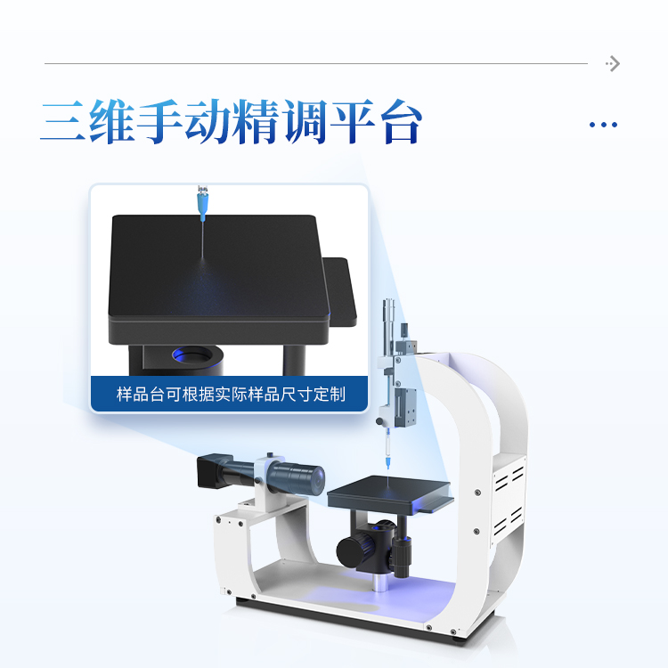 样品台采用三维手动精调平台 ,操作灵活 ,定位准确,样品台可根据实际样品尺寸定制;